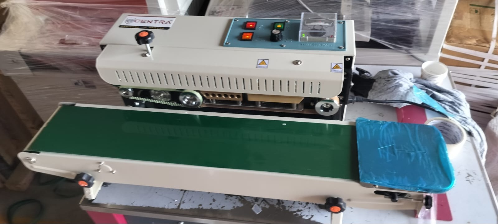Continuous Band Sealing Machine Horizontal Model : A horizontal continuous band sealer seals various thermoplastic bags (poly, cello) for high-volume production in food, pharma, electronics, & chemical industries, packaging items like snacks, powders, seeds, & cosmetics, creating consistent, leak-proof seals for freshness & protection, often with features like nitrogen flushing for extended shelf life.