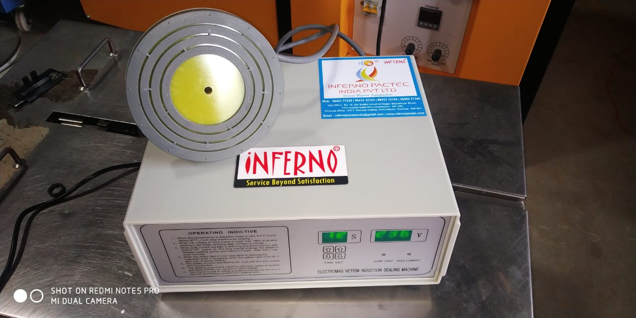 Continuous Induction Sealer For food processing Industry Continuous Induction Sealer: Continuous Induction Sealers are the advance model of manual hand held induction sealers. Continuous Induction Sealers also do the same process of electro magnetically sealing the aluminium wads over the bottles but with less or zero manual intervention. The Continuous Induction Sealer is equipped with a conveyor belt and triple magnetic coils. Here the process is not start and stop but continuous flow. The bottle with wad inside will be placed at the feeding end of the conveyor. The the conveyor of the continuous induction Sealer Pulls the bottle into the machine and passes the same. And then in the process, the aluminium foil gets sealed and then the bottle comes out of the machine. The Continuous Induction Sealer Could Be used in line as well as Standalone.