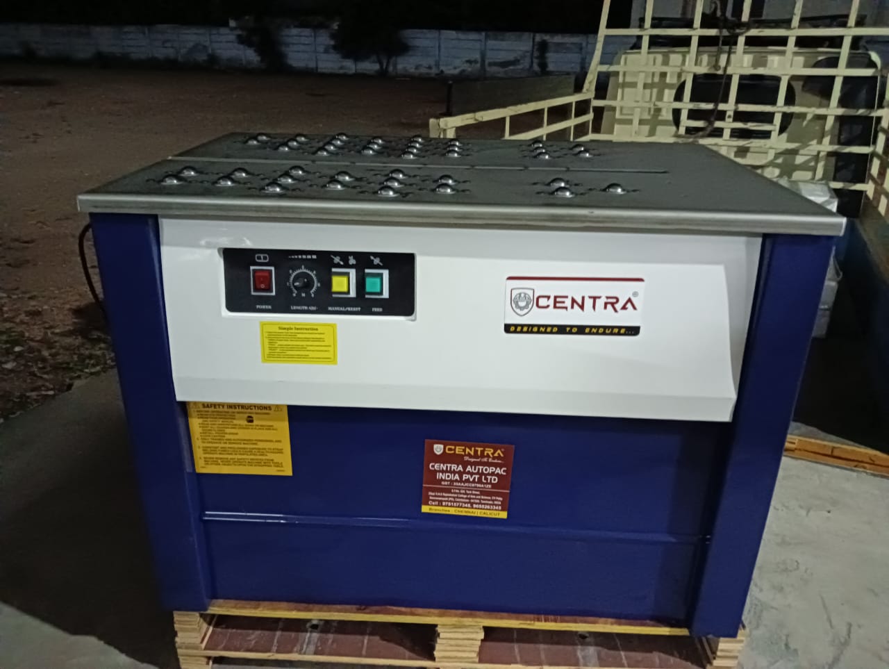 Customised Semi automatic Strapping Machine with Ball bearing table top was dispatched from Centra Autopac India Private Ltd to our reputed customer in Bangalore.Semi automatic strapping machines are generally used to apply straps around carton boxes. In this case we customised the machine for a specific requirement from customer. The table top of the machine is fitted with ball bearings to have a efficient movement of heavy boxes while strapping.