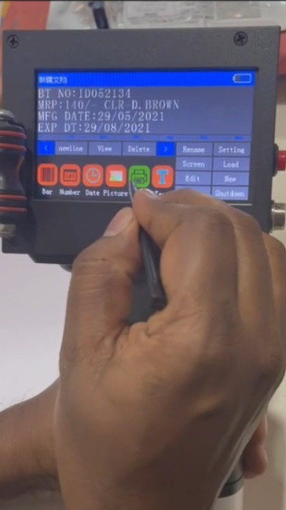 Handheld Inkjet Coding Machine : Handheld inkjet coding machines are portable, , handheld devices designed for printing variable data like manufacturing/expiry dates, batch numbers, barcodes, QR codes, and logos directly onto various surfaces. They are essential for on-the-go marking on porous and non-porous materials, including cardboard, plastic, metal, wood, and glass.
