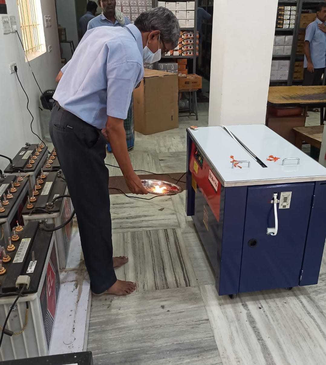 Semi-automatic strapping machine was installed successfully at our valuable customer place in Coimbatore.