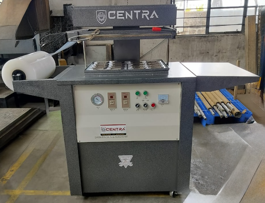Skin Packing Machine was installed successfully at our reputed customer place in Chennai by our Centra Autopac India Private Ltd team. Skin packing machines are instrumental in various industries for securely packaging and displaying products. Widely utilized in retail, food, electronics, and medical sectors, these machines use a vacuum-forming process to tightly wrap a thin plastic film (referred to as "skin") around products, conforming to their shape.