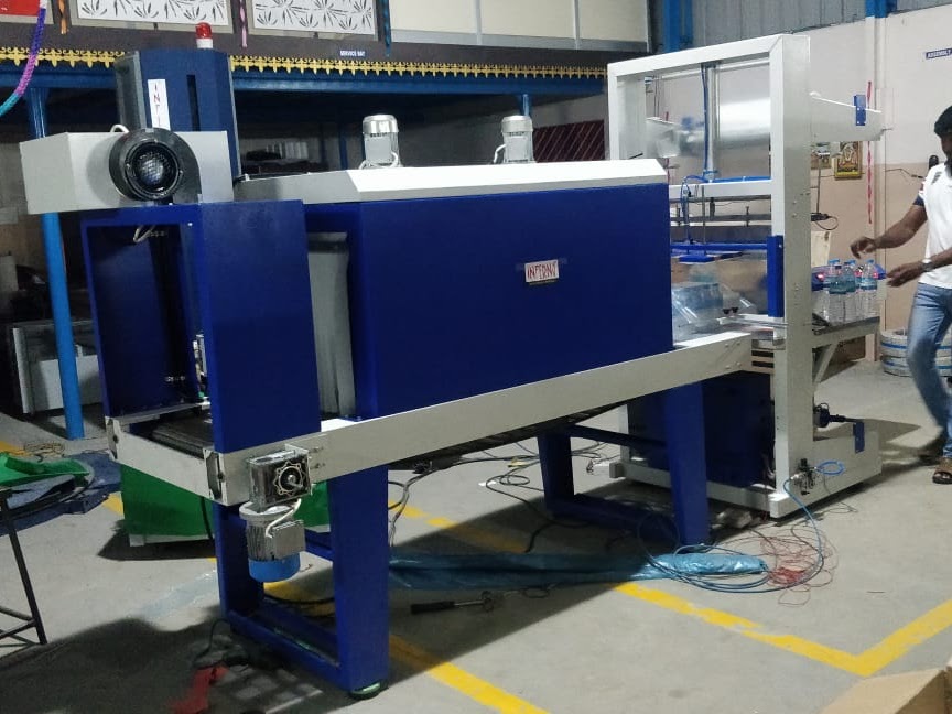 Water Bottle Shrink Wrapping Machine for Oil Industry Water Bottle Shrink Wrapping Machine. Water Bottle Shrink Wrapping Machine delivers a cost effective mode of packaging. The Shrink Film Is Wrapped Over the bundle of bottles and then the same is passed through the Water Bottle Shrink Wrapping Machine, where hot air is blown uniformly over the products. This Process Shrinks the sheet wrapped over the products and results in tight hugging of the bottle thus making as one sturdy Package. The use of LDPE Shrink film Helps in eliminating any damage caused to the package by leakage of water. This kind of packaging made by the Water Bottle Shrink Wrapping Machine is roadworthy and most of the top beverages manufacturing company use similar packaging